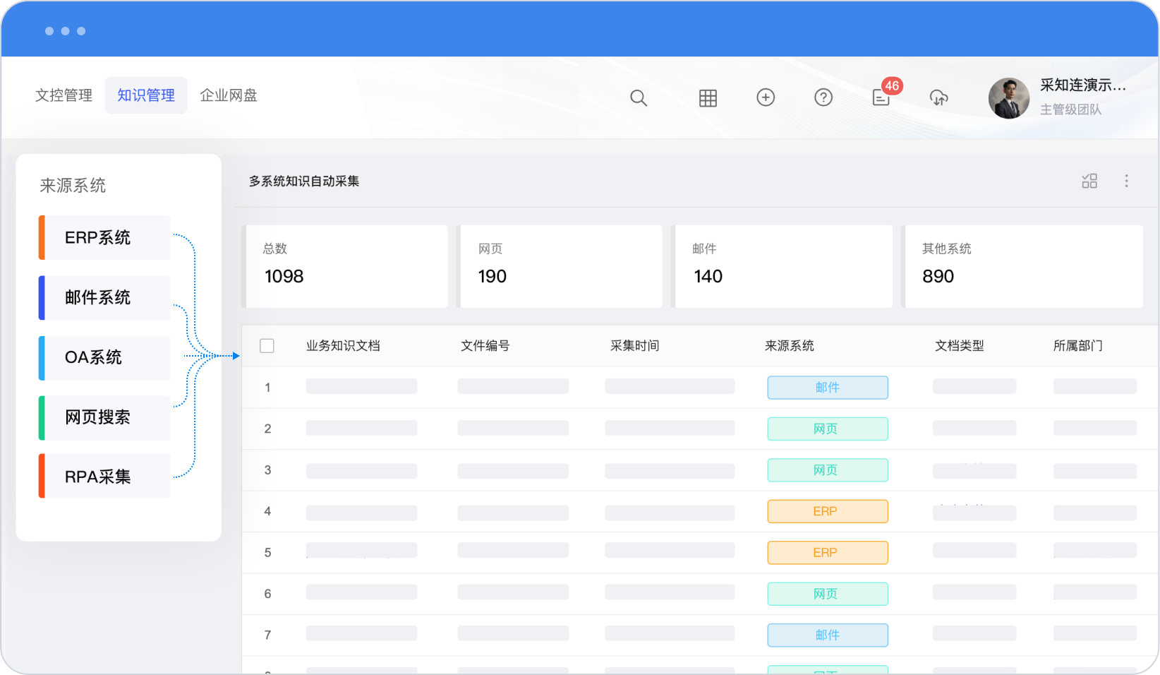 从外部资讯,到业务知识,到共享文件,到个人知识的全渠道自动采集