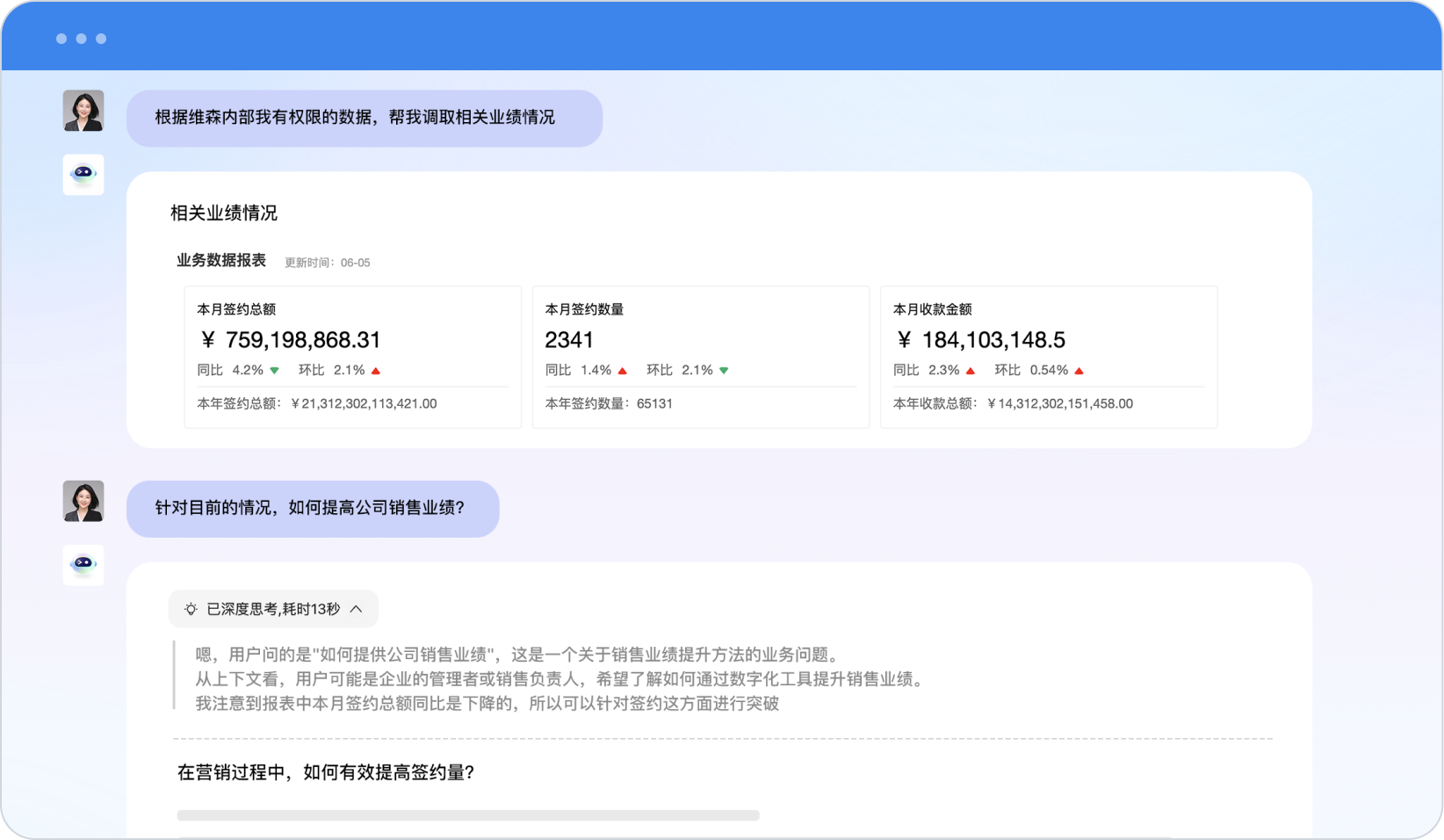 根据不同业务场景需求,打造业务领域的知识智能体,知识与业务深入协同。智能体可嵌入至具体的流程节点,根据条件触发自动运行并反馈给员工推荐的内容、答案甚至指令。