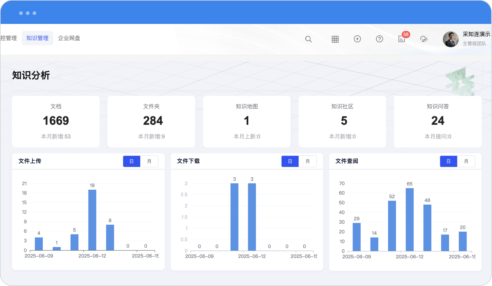 通过直观的图表展示,对于知识来源、标签、数量、活跃度等多维度进行数字化统计分析,协助组织更好地理解问答平台的使用情况和用户行为模式。不仅有助于优化内容管理和推荐算法,还能为决策提供有力支持,提升整体平台的运营效率和用户体验。