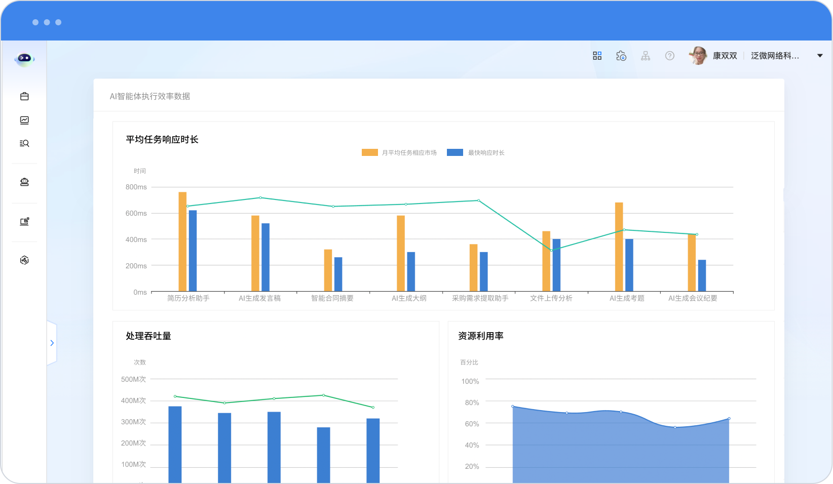 自动采集智能体在业务端的执行效率数据,包括任务响应时长、处理吞吐量、资源利用率等关键指标,并统计分析各类异常事件的发生频率、类型及影响范围。能够支撑业务决策优化,优化智能体算法,助力系统性能改进,形成持续优化的闭环管理。