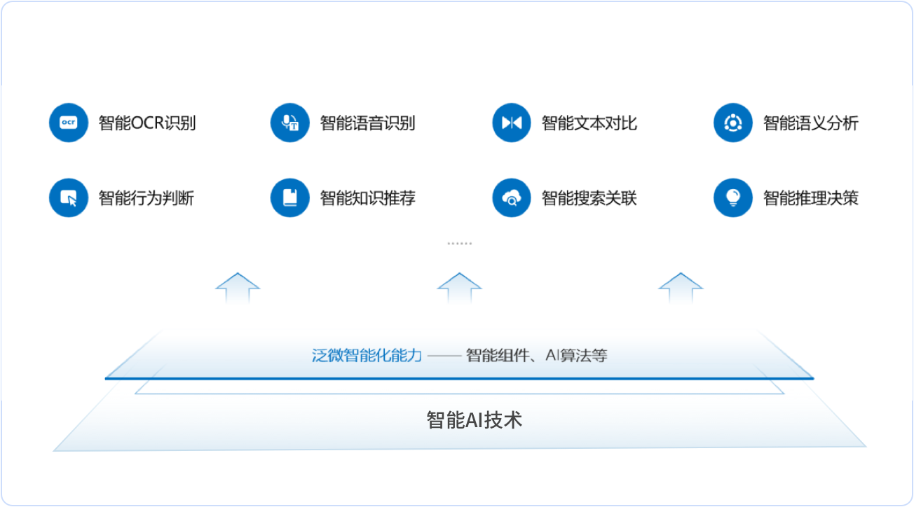 通过OCR、NLP、知识图片、大模型等AI技术,能够实现组织知识深度洞察; 通过智能AI组件可快速实现智能搜索、推荐、图谱、问答等场景,让知识文档使用更加高效便捷。